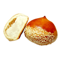 A special pastry made with condensed milk, filled with smooth white bean paste and coated in white sesame seeds.