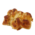 A ham and cheese bun with a touch of sweet garlic butter, glazed with garlic syrup, and topped with mozzarella and mayo.