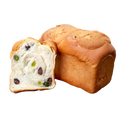 A white loaf bread filled with soft sweet rice chunks and mixed sweet beans.